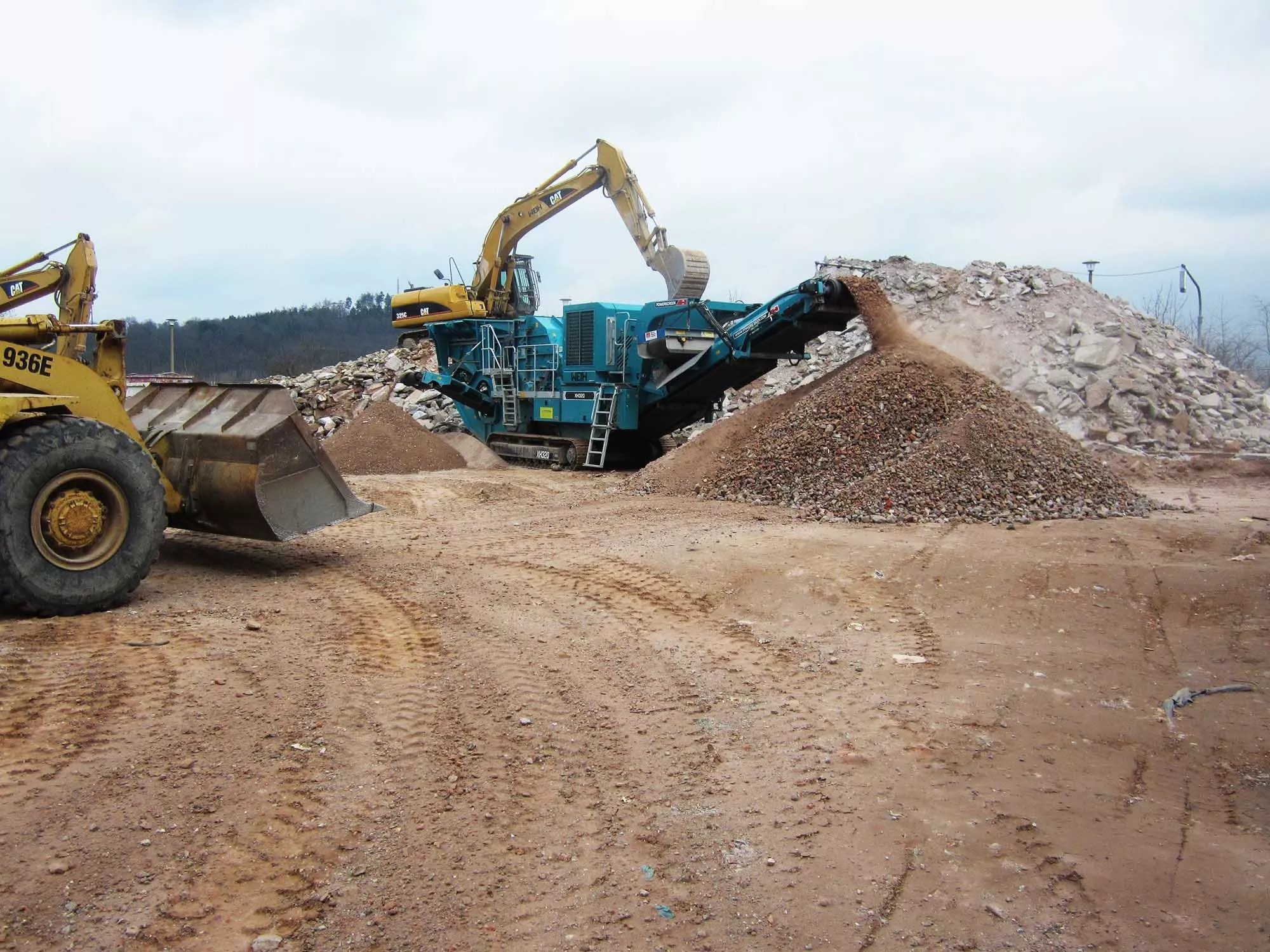 Aus eigener Aufbereitung bieten wir Beton- und Ziegelrecycling, Kalkschotter und Mutterboden an.